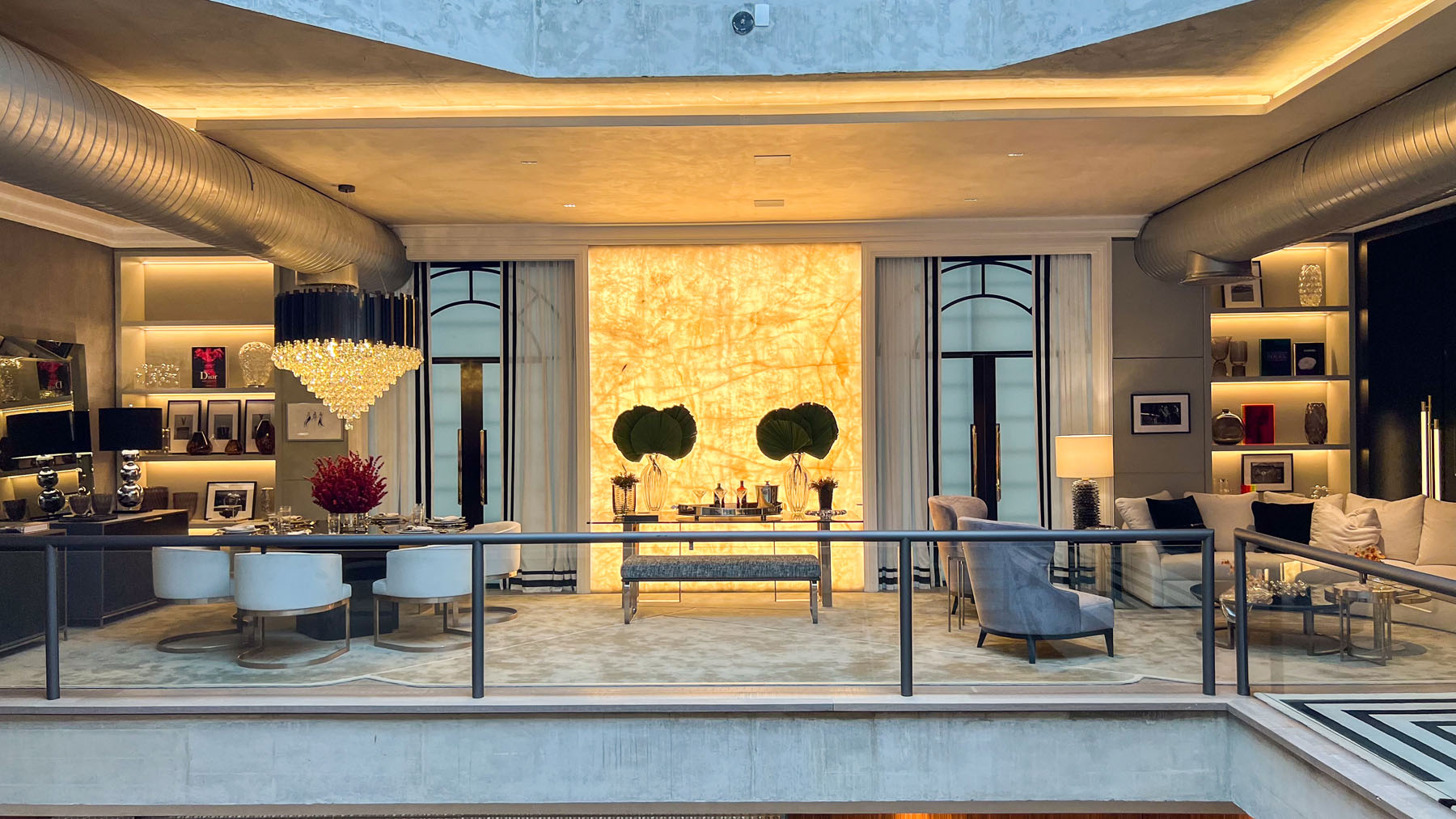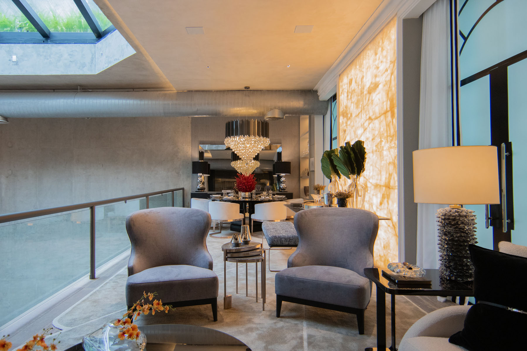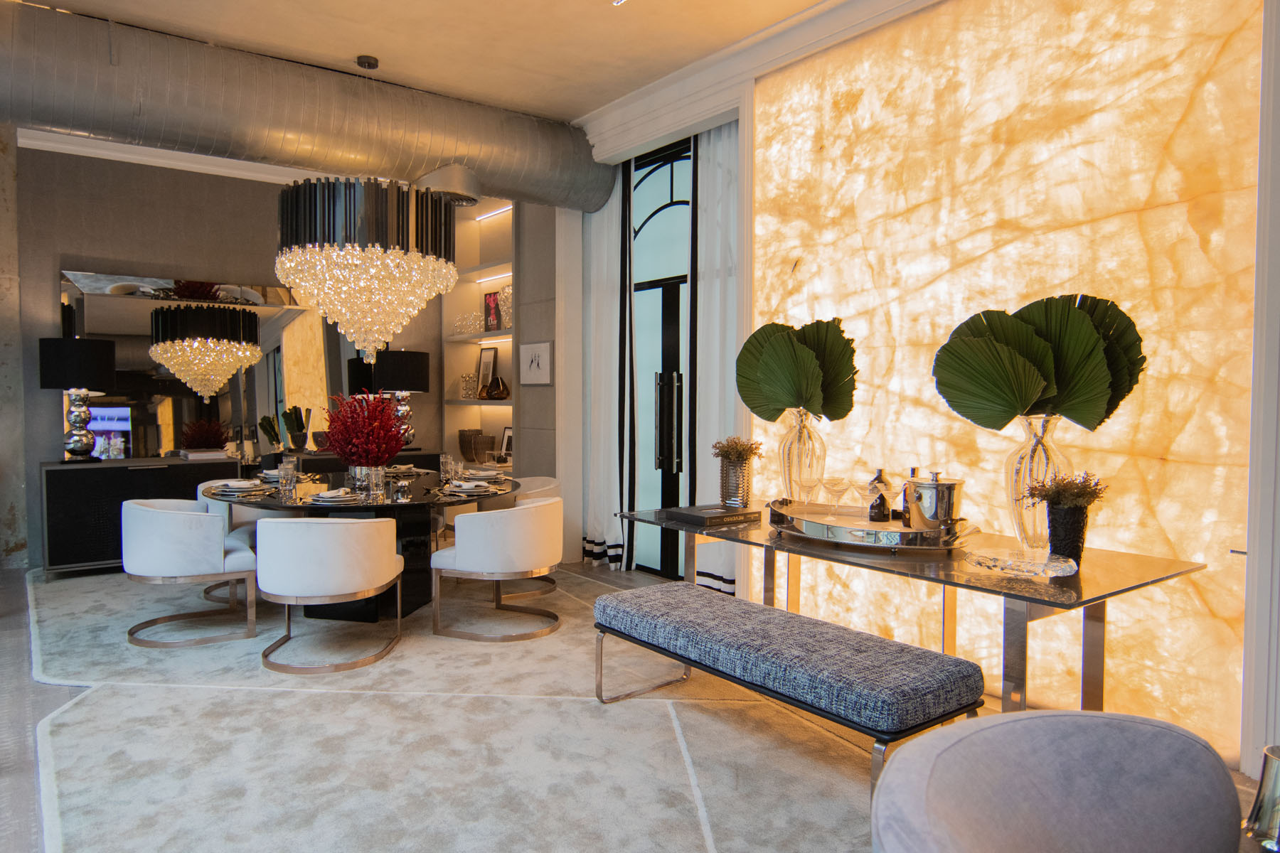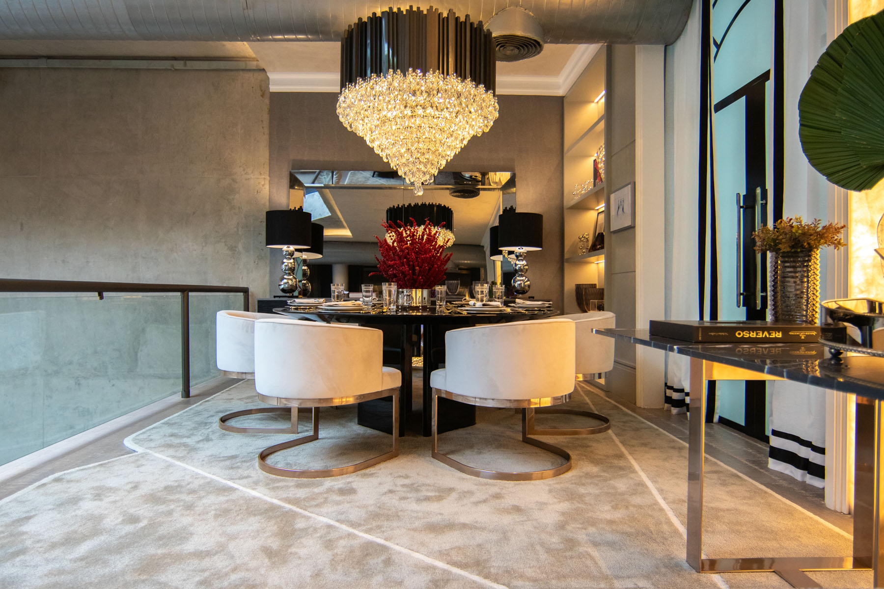 Descrição: Projeto de um ambiente multifuncional com adega, charutaria, living, bar e jantar. A proposta busca criar uma jornada de relaxamento e interação, destacando móveis sinuosos, para proporcionar uma atmosfera fluida e acolhedora, transmitindo requinte e sofisticação através de móveis funcionais e atemporais.